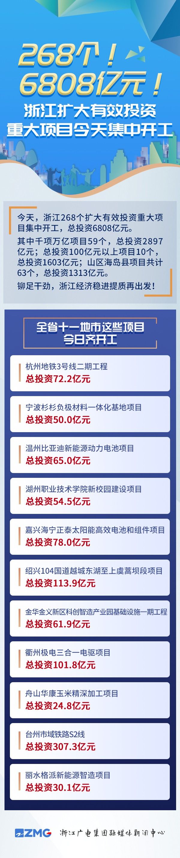 268个!6808亿元!浙江扩大有效投资重大项目今天集中开工