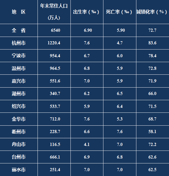 按照国家统计局统一部署,2021年浙江省5‰人口变动抽样调查以全省为总体,以11个设区市为子总体,采取分层、整群、概率比例的抽样方法,共抽取3313个村级单位为调查样本,调查人口43万余人。现将根据5‰人口变动抽样调查数据推算的全省2021年人口主要数据公布如下: