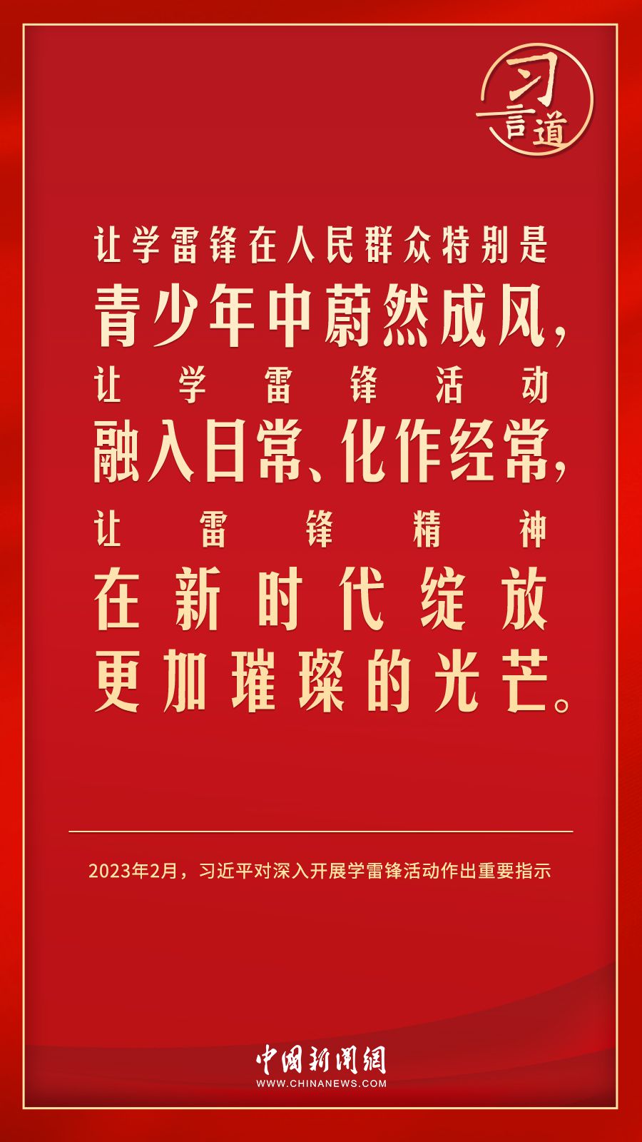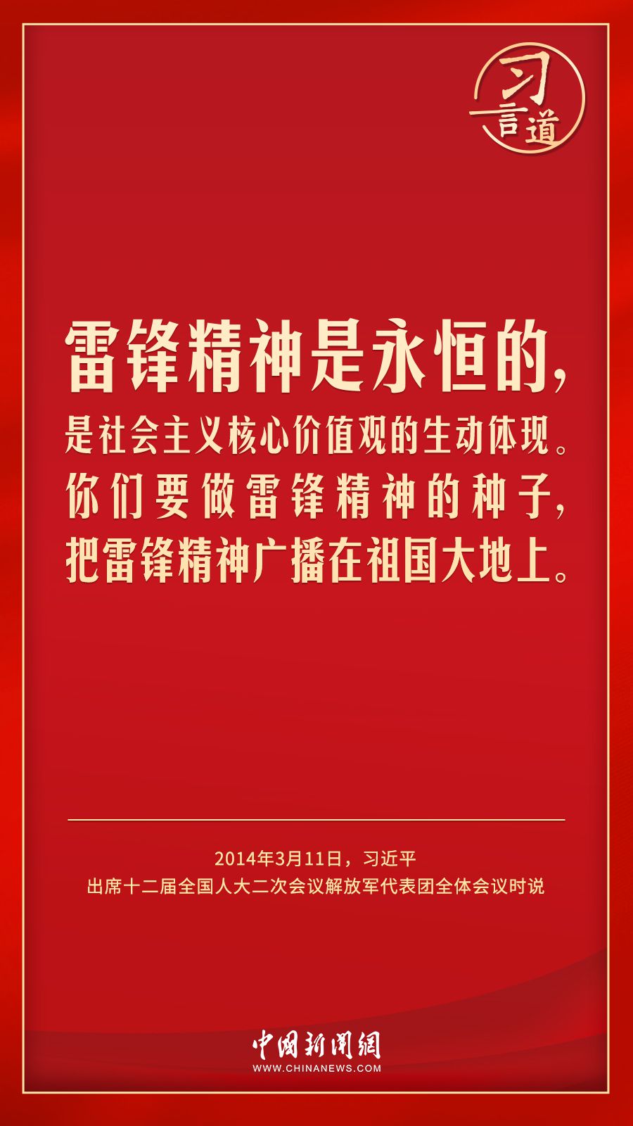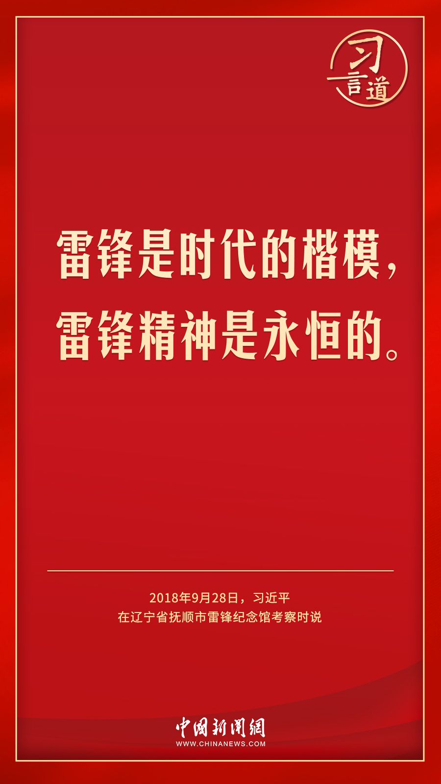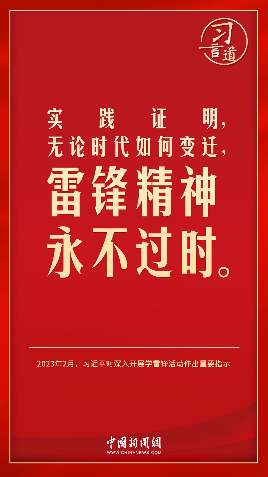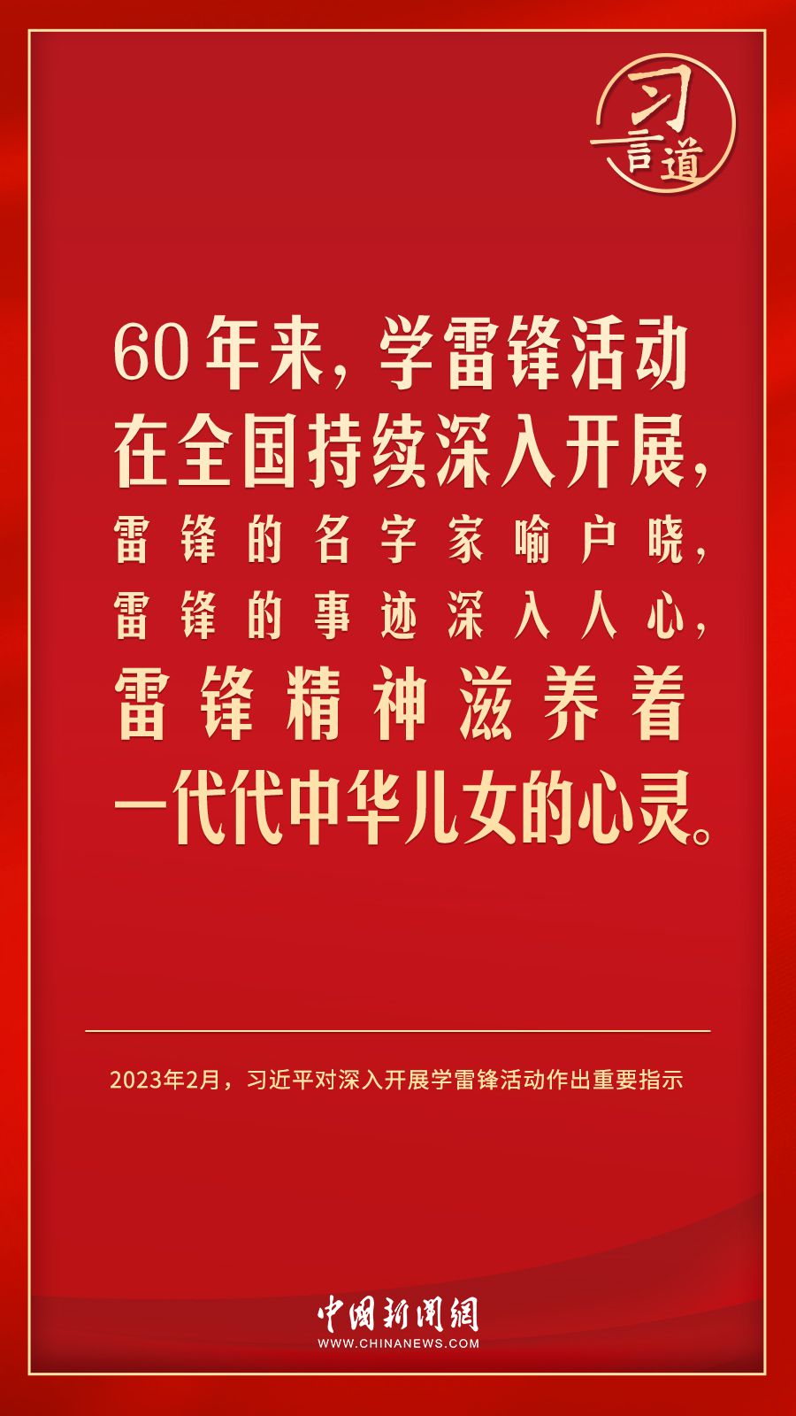 今年是毛泽东等老一辈革命家为雷锋同志题词60周年。党的十八大以来,习近平总书记就学习弘扬雷锋精神多次作出重要指示,他强调,无论时代如何变迁,雷锋精神永不过时。