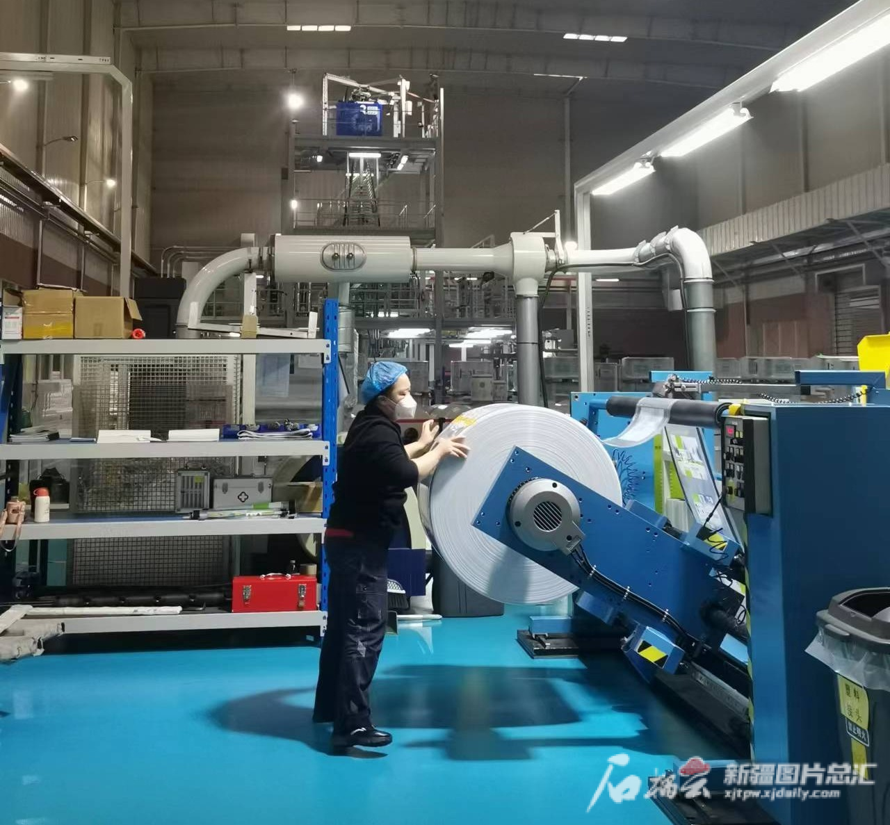 2月24日,在乌鲁木齐市新材料产业代表企业新疆莱沃科技股份有限公司生产车间里,技术人员在操作设备。