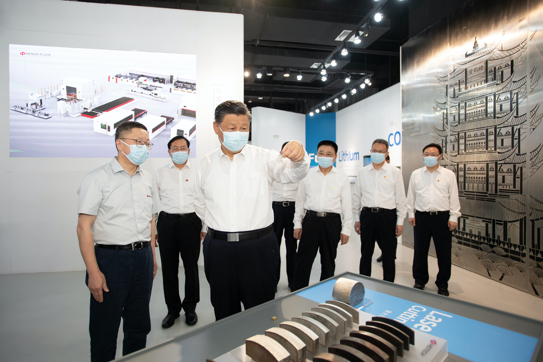 △2022年6月,在华工科技激光科技馆,习近平总书记察看激光技术产业应用展品