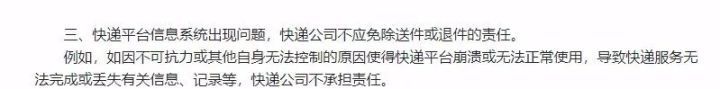 中消协点评的“快递平台系统出现问题,快递公司不担责”不公平格式条款。