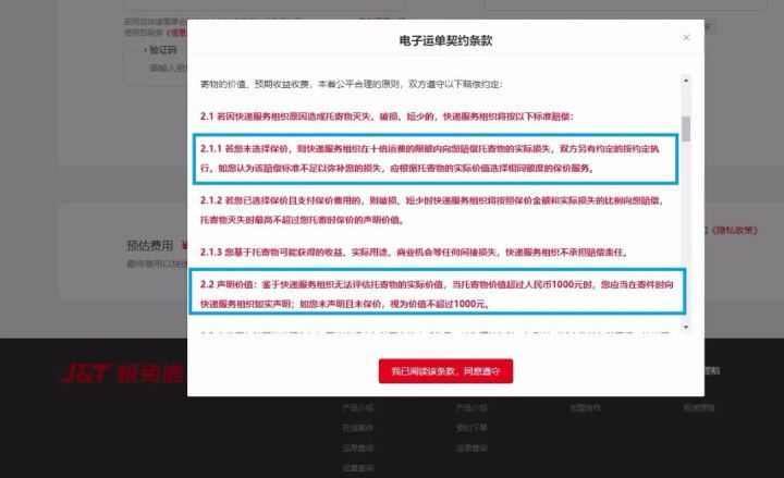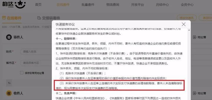 中消协点评的“已保价快递的赔偿”不公平格式条款。