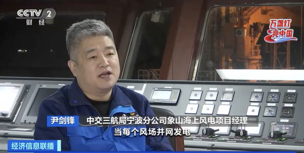 中交三航局宁波分公司象山海上风电项目经理 尹剑锋:每次在海上看到散落的灯光,可能都是一个不眠之夜,每一个工作者都在付出自己的心血或者是汗水。当每个风场并网发电,点亮了万家灯火,自豪感就油然而生。我们作为一个追风人、点灯人,继续朝着追风这个脚步走下去。