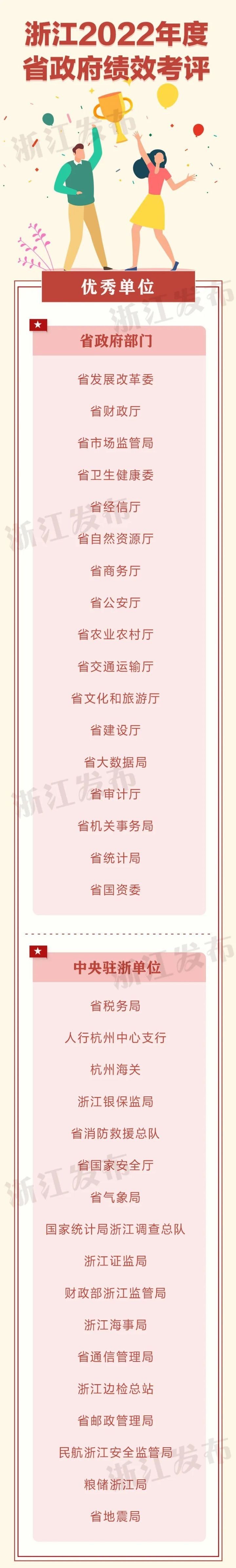 近日,经省政府常务会议审定,浙江省政府办公厅通报了2022年度省政府绩效考评情况~