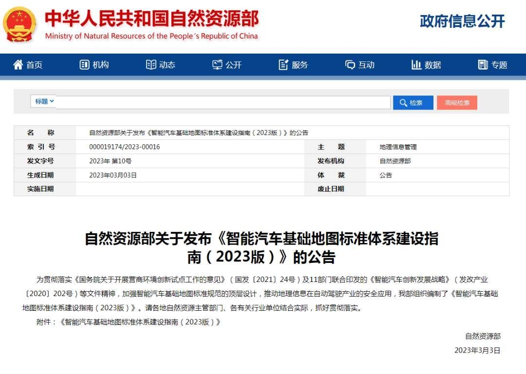 自然资源部3月7日发布《智能汽车基础地图标准体系建设指南(2023版)》。指南提出,要先行制定急用先行的10项以上智能汽车基础地图重点标准,涵盖基础通用、数据采集、动态更新等技术要求和规范,推动智能汽车基础地图及地理信息与汽车、信息通信、电子、交通运输、信息安全、密码等行业领域协同发展。到2025年,初步构建能够支撑汽车驾驶自动化应用的智能汽车基础地图标准体系。