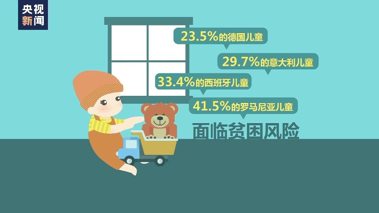 数据显示,23.5%的德国儿童、29.7%的意大利儿童和33.4%的西班牙儿童面临贫困风险,而在罗马尼亚这一数字则高达41.5%。报告称,来自移民、难民等家庭的儿童以及无人陪伴和无合法身份的儿童受影响最为严重,而来自单亲家庭的儿童以及残疾儿童等面临的贫困风险也相对较高。此外,许多欧盟地区儿童的精神健康状况也值得关注。救助儿童会表示,欧洲现阶段面临的诸多危机已影响到许多家庭的正常生活,剥夺了儿童成长发展和获得幸福所需的必需品。