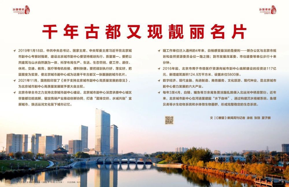 北京市举全市之力支持北京城市副中心建设,北京城市副中心深度承接中心城区非首都功能疏解,锚定高端产业推动创新协同,打造“蓝绿交织、水城共融”宜居城市,焕活运河文化留下城市记忆。北京市通州区加速崛起为一座按照世界眼光、国际标准、中国特色、高点定位建设的“未来之城”。