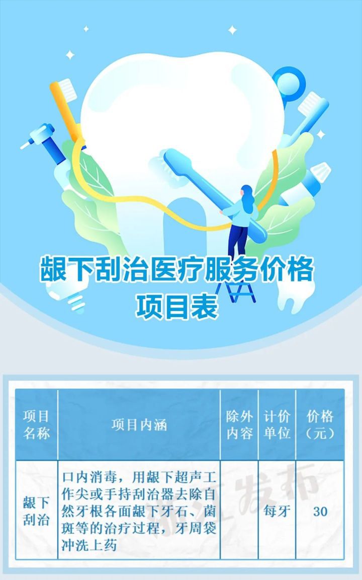 完善龈下洁治项目名称和项目内涵,调整项目价格。各设区市医疗保障局按规定确定辖区内公立医疗机构价格。
