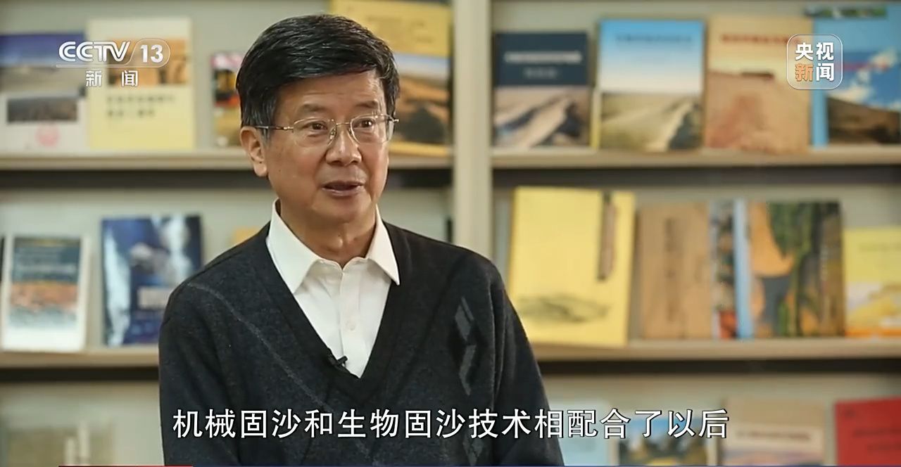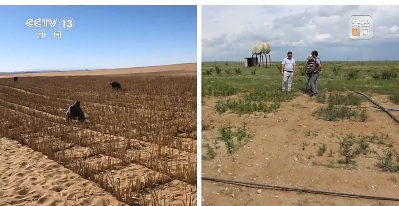 中科院西北生态环境资源研究院研究员 王涛:我们在典型的沙漠化草场沙漠区里面,大概超过了1700亩的范围里面,做了不同的示范。一个是流沙固定,第二个是要进行机械固沙和生物固沙技术相配合了以后,进行草场的恢复,然后还要做大棚,给他们做育苗,育当地的苗,然后再移植。我们的思路还是没有引进我们国家的种子,而是用当地的物种进行育苗繁育播种这些,就是因地制宜。
