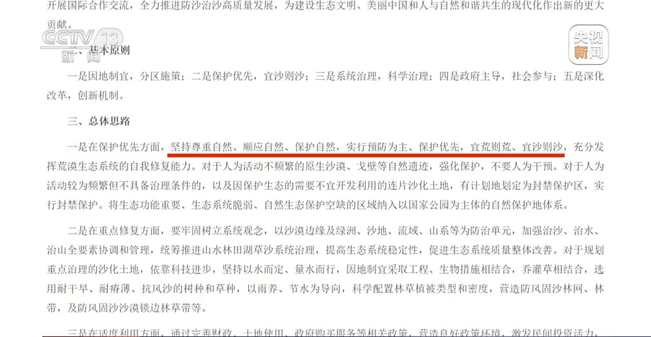 原生沙漠受水资源等因素限制,无法透过人类改造将其消灭,去年底国家林草局印发的《全国防沙治沙规划(2021—2030年)》中,也强调了对于原生沙漠、戈壁等自然遗迹,应坚持宜沙则沙。