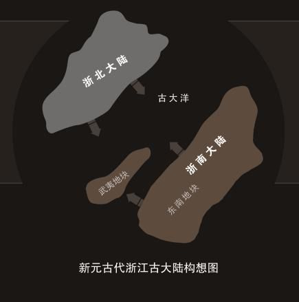 20亿年前的元古宙时期。当时,地球上有两块“积木”漂浮在茫茫大海,它们是以江山—绍兴拼合带为界,浙西北、浙东南两块大地的雏形,后来,它们经历了地质演化,拼合成现在的浙江大地。