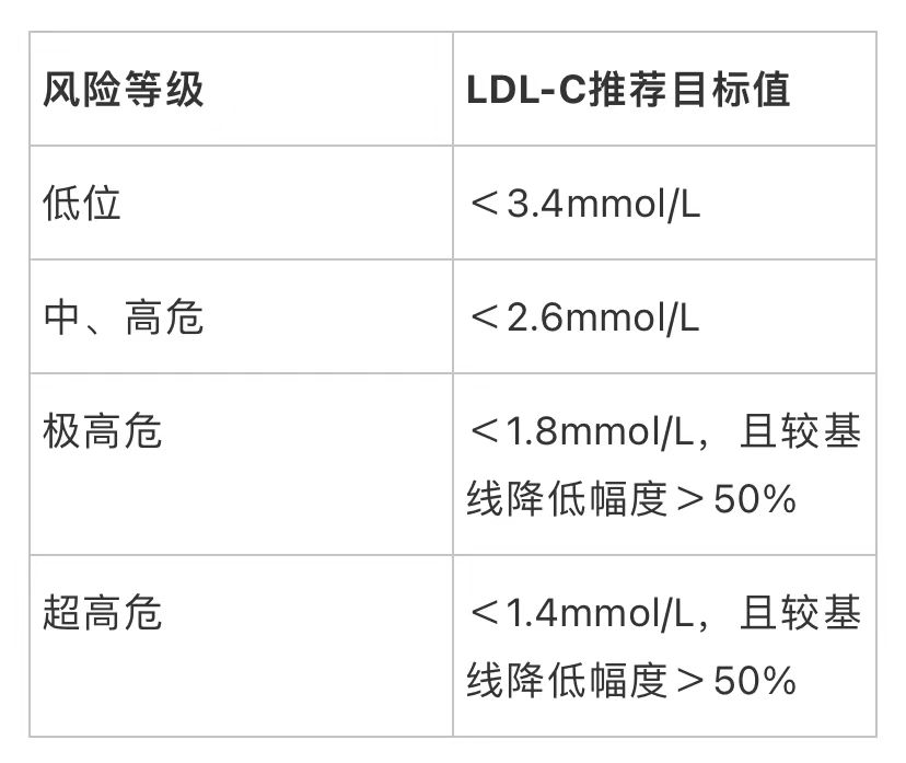 将发生过2次及以上严重ASCVD(即动脉粥样硬化性心血管疾病患者发生心肌梗死、脑卒中)事件或发生或1次严重ASCVD事件且合并2个及以上高危因素的患者分类为超高危群组。更严格的控制目标:低密度脂蛋白胆固醇小于1.4且基线降低幅度大于50%。