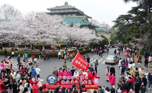 2022年,武汉大学再发邀请:“把最美的樱花盛景,送给抗疫英雄。”同步开通网上“云赏樱” 通道,全球200多个全媒体平台参与直播,1.8亿人次通过“云赏樱”通道共赴这场春天的约定。