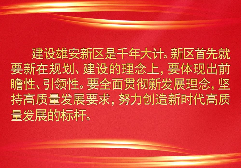 习近平总书记高瞻远瞩谋划推动雄安新区规划建设,他强调,要贯彻高质量发展要求,创造“雄安质量”,在推动高质量发展方面成为全国的一个样板。
