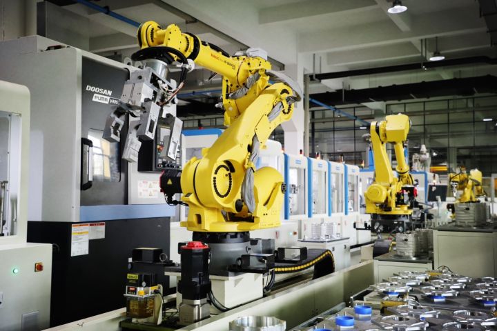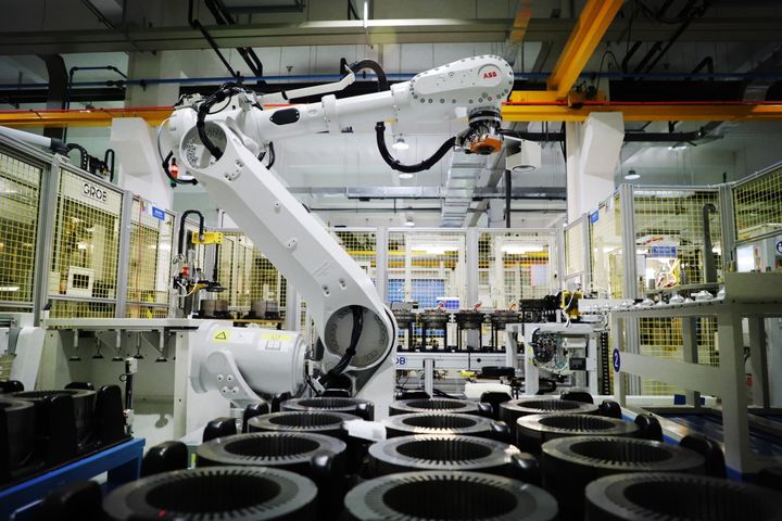 浙江上虞,卧龙集团采埃孚生产车间,机械臂在作业。