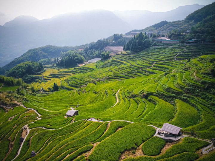 浙江省丽水市云和县的梯田(无人机照片)。新华社记者江汉摄