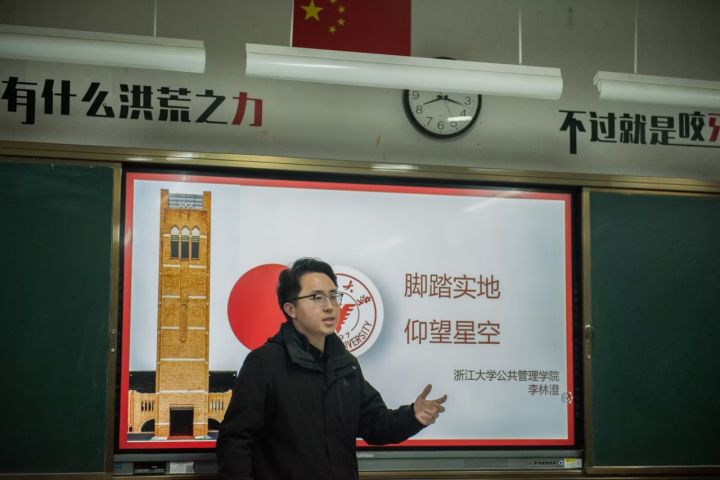 除了同龄人之间的交流,浙大“青马”学员们还走进磐安中学,跟紧张备战高考的高三学子们进行了深入交流。