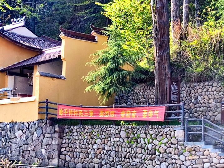 刚入村,一条挂在村口处的红色条幅就吸引了她的注意,上面写着“岭干村村民三要:要团结、要勤奋、要争气”。