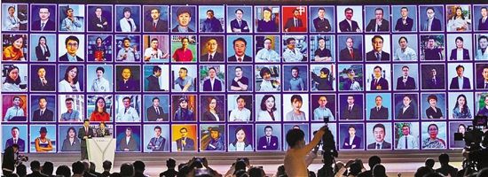 2022年世界青年科学家峰会温州开幕式现场,青年科学家的照片墙引人注目。图为受访者提供