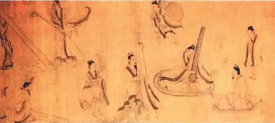 顾恺之《斫琴图》(局部) 宋人摹本。故宫博物院藏