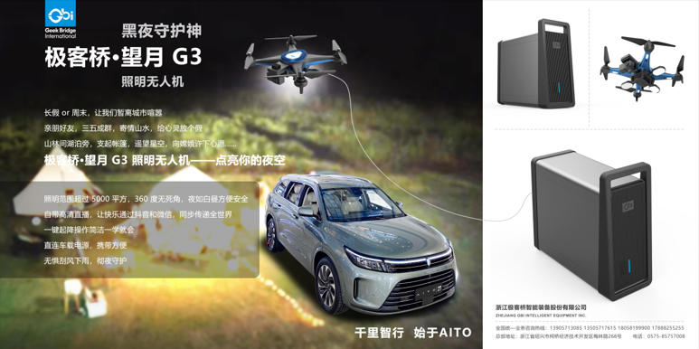 以极客桥·望月G3照明视频无人机为例,光是360度无死角光照范围就超过5000平方米,不仅抗大风大雨,耐酷暑寒冬,还能直连车载电源、发电机,既能服务于夜间文体活动,也能够为各类应急救援、停电抢修等提供方便快捷的长时间、高亮度、可移动式照明和视频服务。