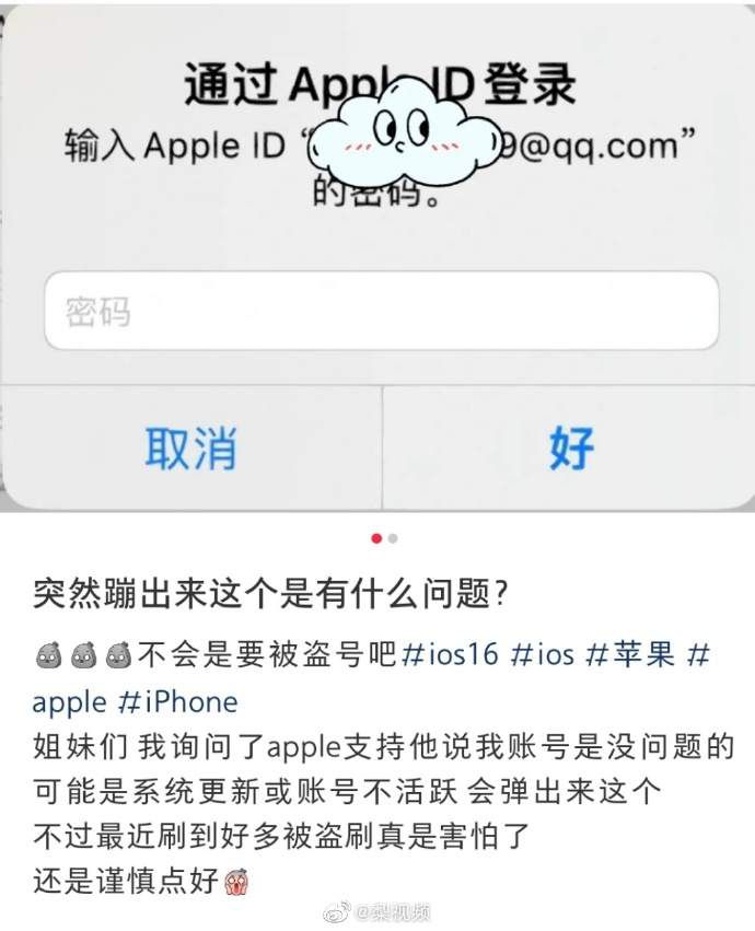 4月16日,多位用户反映,在没有下载软件、需要支付的情况下,苹果设备在短时间内多次要求用户输入Apple ID密码。即使输入了正确的密码,系统同样会提示登录失败,并在不久后继续要求用户重新输入。有部分用户在多个社交平台上担心,这是一种新型诈骗。