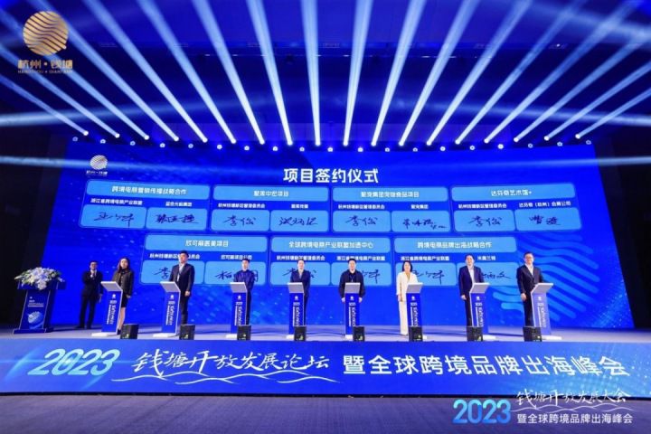 现场还举行了项目签约仪式,聚宠宠粮食品跨境项目、欣可丽项目、聚库(杭州)文化传媒等7个项目签约落地,通过持续深化合作,助推钱塘区开放型经济迈向新的台阶;钱塘新区跨境电商形象数字人首次亮相并进行营商环境推介。