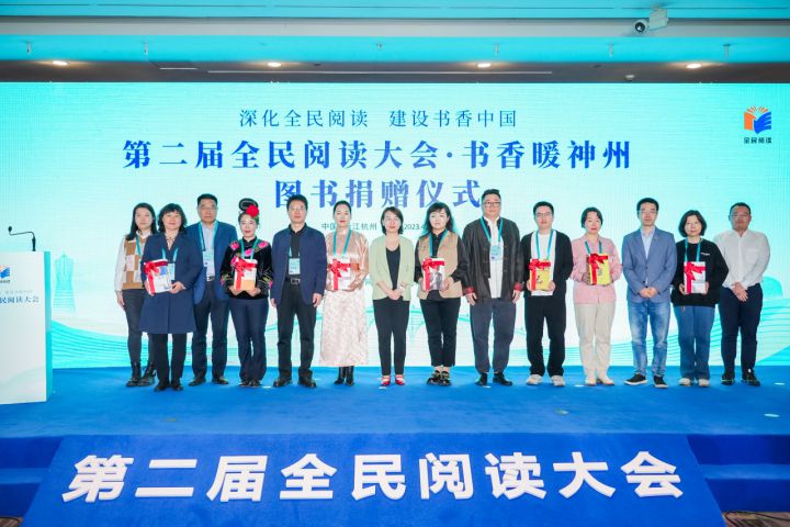 4月24日,第二届全民阅读大会“书香暖神州”图书捐赠仪式在杭举行。本次活动共计捐赠5100万元码洋图书。