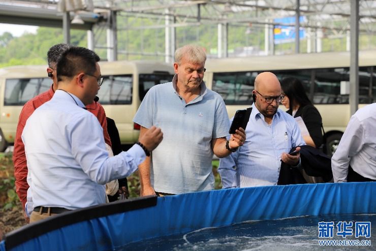 外宾在“5G物联网+余村溪泉鱼”项目基地。新华社记者张晓洁 摄
