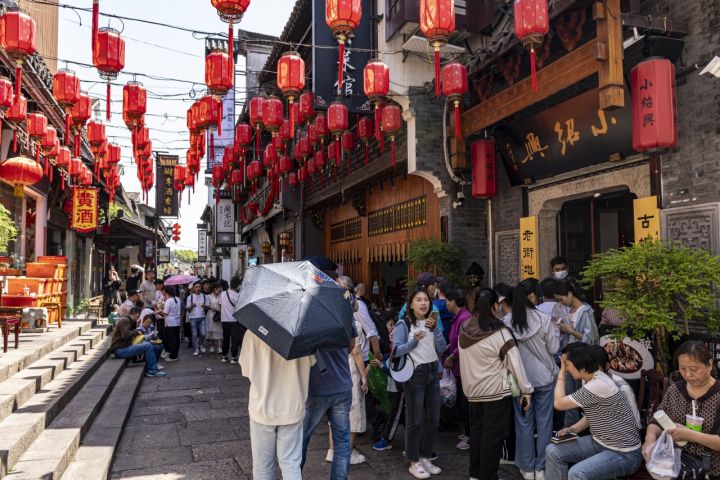 5月1日,绍兴仓桥直街迎客流人潮 图源 ICphoto
