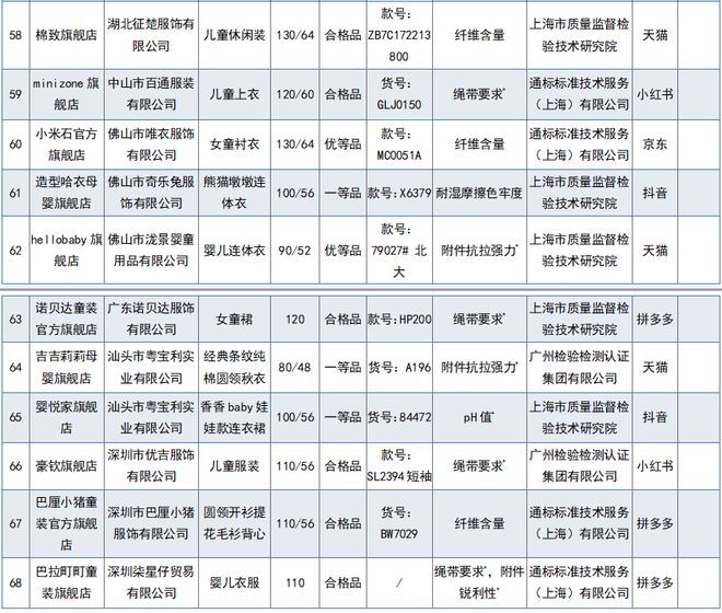 绳带要求有29批次产品不合格,pH值有11批次产品不合格,附件抗拉强力有8批次产品不合格,以上三个项目均为安全项目。经技术机构分析: