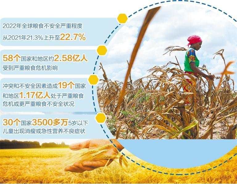 联合国粮农组织(FAO)网站5月3日发布《2023年全球粮食危机报告》(GRFC)指出,2022年相关数据显示,受经济冲击、冲突和不安全、气候变化和极端天气事件等因素的驱动,全球粮食危机形势和严重粮食不安全状况进一步加剧,推动全球粮食危机应对机制模式转变和加强相关国际合作的紧迫性与重要性日益凸显。