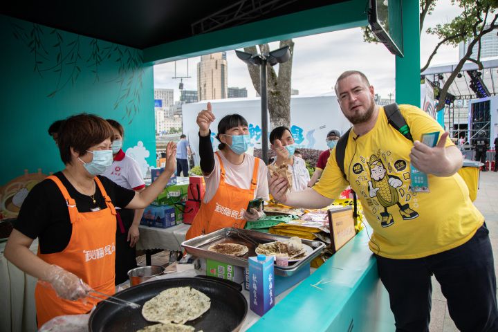 资料图:第二届中国——中东欧国家博览会期间,外国友人品尝地方美食。记者 李震宇 吕之遥 贺元凯 摄