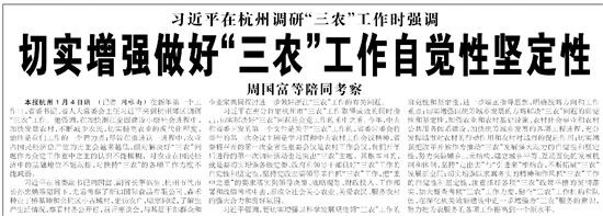 围绕年度工作,当时,习近平同志说,省委将召开的第一次全省性重要会议是农村工作会议,我们开年后进行的第一次调研活动也是突出“三农”主题。他强调,对解决好“三农”问题作为全党工作重中之重的认识不能模糊,对农业在国民经济中的基础地位不能动摇,对扶持“三农”的各项工作力度不能减弱。