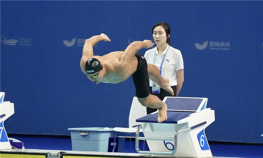 标准的赛事泳道很窄,只有2.5米,但吴鹏早已离不开这一方池水。在杭州奥体中心游泳馆,他的杭州亚运会梦碎了,但同时他也圆梦了,因为这里就是杭州亚运会游泳的比赛场。