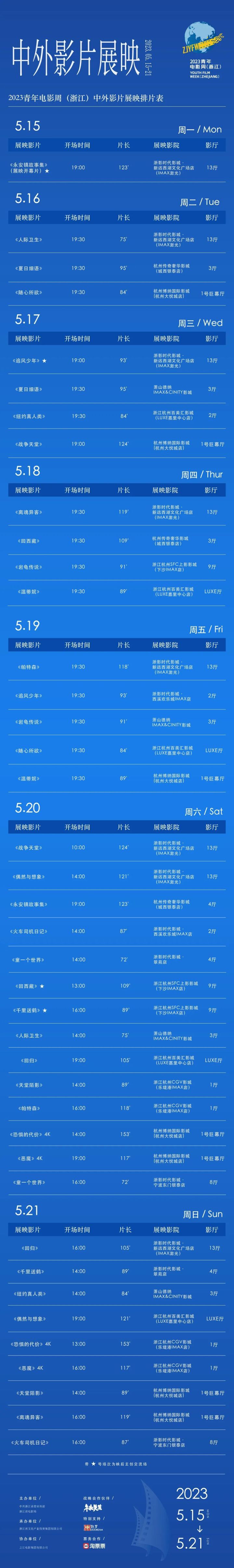 “中外影片展映”活动将于2023年5月15日至5月21日,在杭州、宁波两地举行。