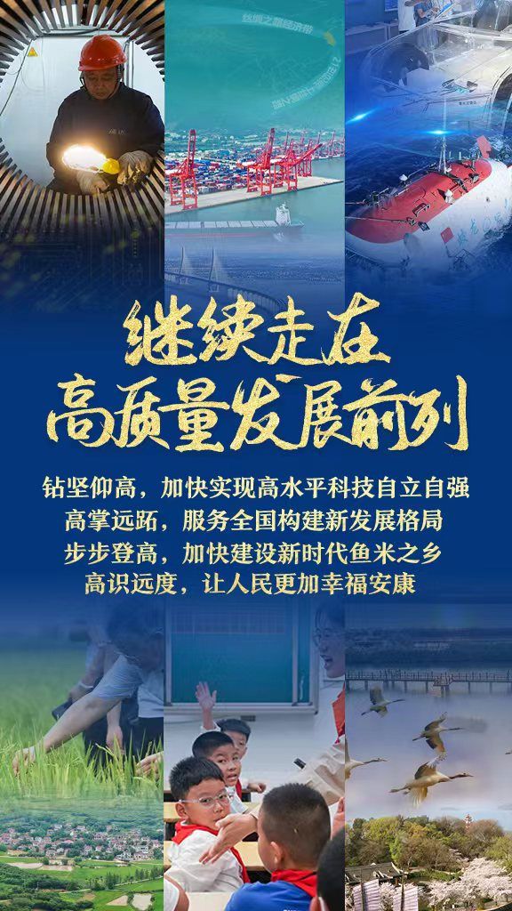 高质量发展是全面建设社会主义现代化国家的首要任务。江苏省委书记信长星表示,在科技自立自强上走在前、在构建新发展格局上走在前、在推进农业现代化上走在前、在强化基层治理和民生保障上走在前,涵盖了推动和实现高质量发展的必由之路、战略基点、必然要求、最终目的,是习近平总书记为我们推动高质量发展走在前列擘画的“路线图”。