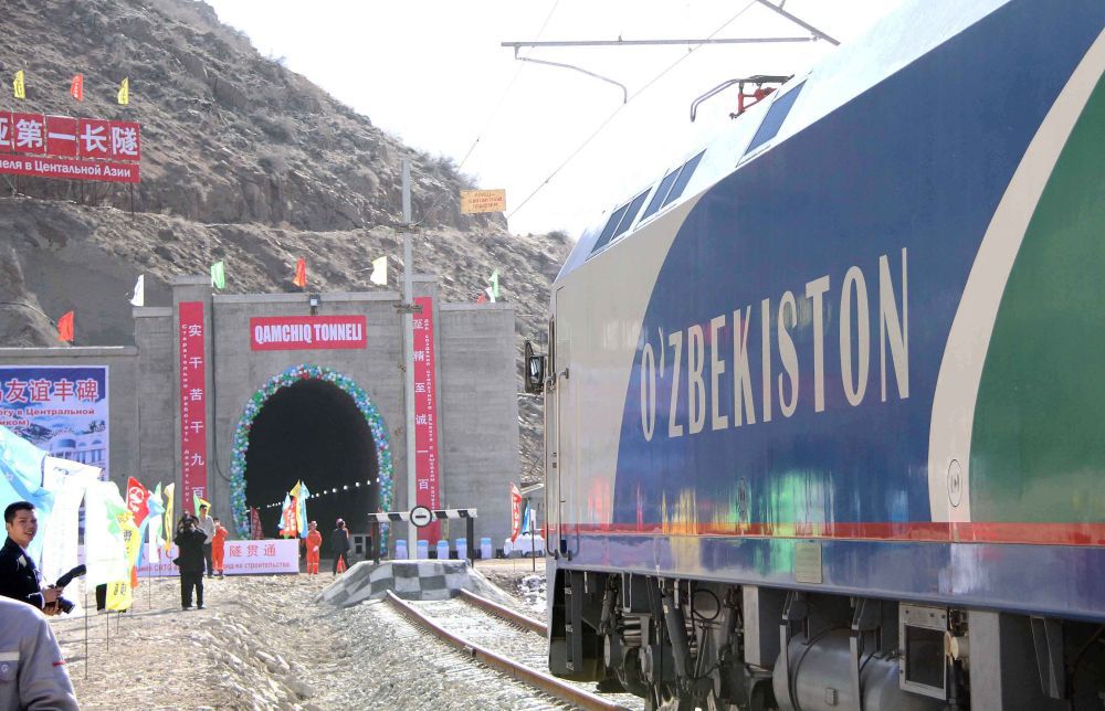 中铁隧道集团承担的乌兹别克斯坦安格连-帕普铁路卡姆奇克隧道全隧贯通(2016年2月27日摄)。新华社记者 沙达提 摄