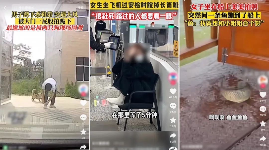 三是传播较广,点击量高。“新黄色新闻”常常是先由某家自媒体或网友个人发布,获得一定流量后,更多的自媒体甚至主流媒体社交账号趋之若鹜地跟进发布。在算法推荐下,这类短视频往往点击量较高。比如,一则时长8秒的短视频《女生过安检时脱掉长靴,很社死》,在某主流媒体账号上点赞量竟达60多万次。