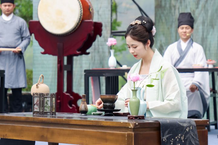 5月20日,余杭径山,2023年“国际茶日”浙江主场活动上,以茶二代周颖为主演者的径山禅村茶艺队为大家奉上了一场径山茶宴表演。去年11月,由浙江牵头申报的“中国传统制茶技艺及其相关习俗”项目被列入联合国教科文组织人类非物质文化遗产代表作名录,“径山茶宴”成功入选。