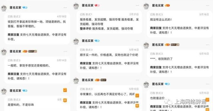 以顺手价19.8元、标价488元的项链为例,该产品在该店铺的正常售卖价格只有29.8元,而且详情页面没有任何“原价488元”的介绍。同时,店铺综合评价和产品评价都不太高,有消费者评价该项链“劣质玩具”“塑料的,不是珍珠”“断的,找客服,客服不理”“价格虚高”“非常廉价”“就没有这么坑的”……记者试图就“顺手买1件”的产品联系该店铺客服,却始终没人答复。