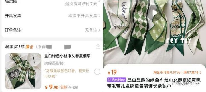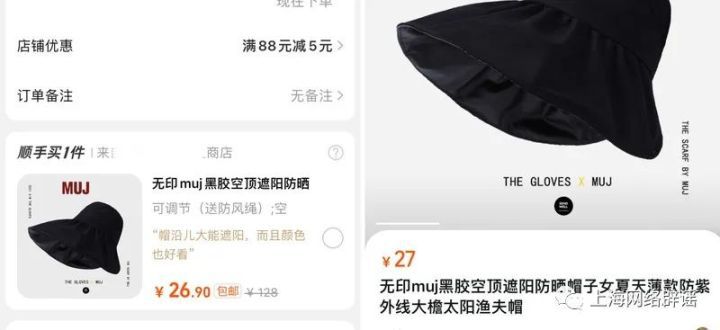 至于标价128元的防晒帽,正常售卖价格为27元,只比顺手价高了0.1元,而且标注的品牌涉嫌傍名牌;标价129元的小丝巾,正常售卖价格也只有19元。