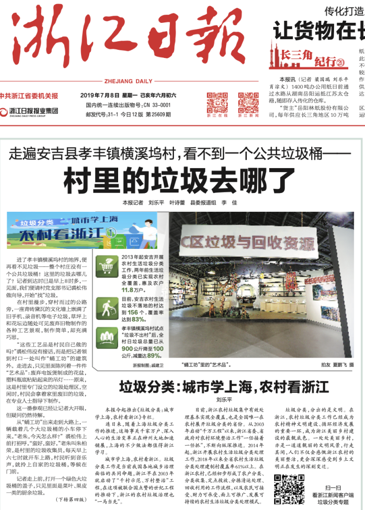 说到垃圾分类,浙江最大的亮点还是在农村。2019年,《浙江日报》曾推出《垃圾分类:城市学上海,农村看浙江》报道专栏,关注垃圾分类这一城乡治理面临的共同命题。