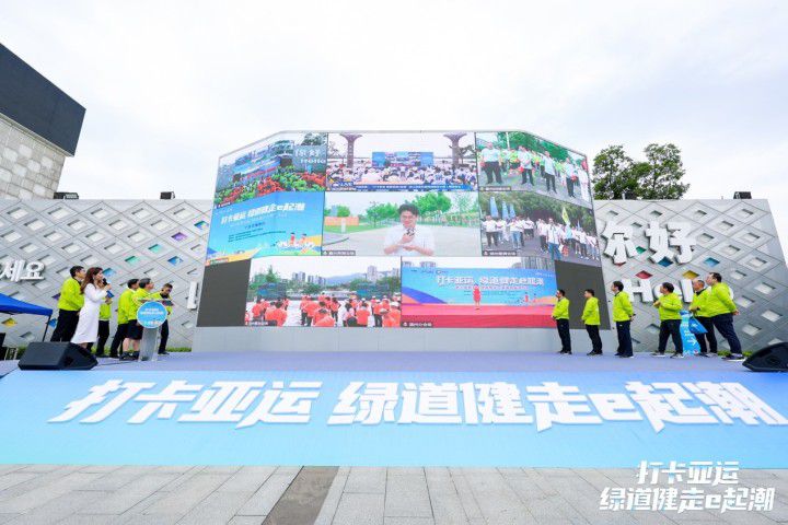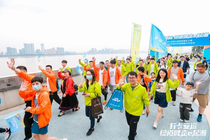 在杭州主会场,300人队伍率先体验绿道健走打卡,成为一道靓丽风景线。