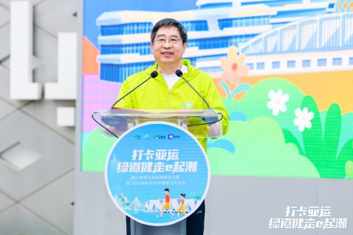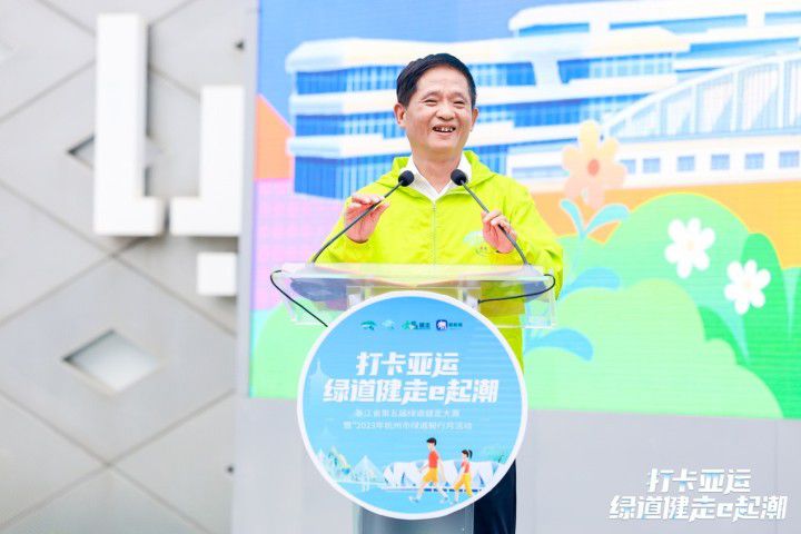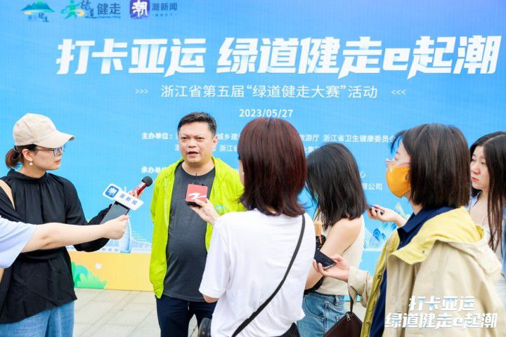 浙江省建设厅城建处处长沙洋接受采访时表示:“再过100多天,第19届亚运会将在杭州举行。今年的绿道健走大赛在钱塘江边的之江绿道启动,目之所及就是亚运主赛场奥体中心,就是希望通过绿道健走营造全民健身的迎亚运氛围,让更多的老百姓参与到绿道健身中。”