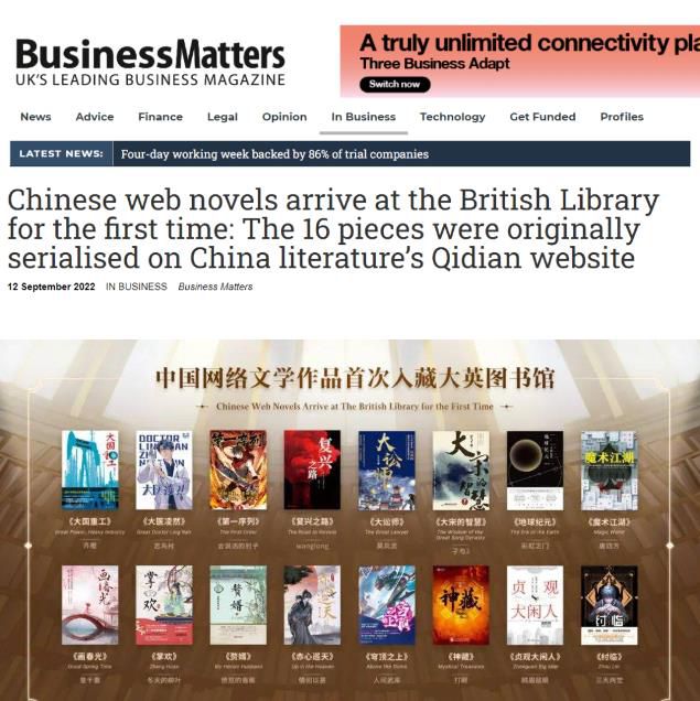 对中国网文的认可并非仅来自一部分外国网友,主流平台也悄然加入了中国网文的“粉丝群”。《大国重工》、《大医凌然》、《赘婿》等16部中国网文作品,在2022年被官宣收录至大英图书馆中文馆藏书目。