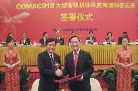 2009年5月中国商飞与西子签署C919项目MOU。受访者供图