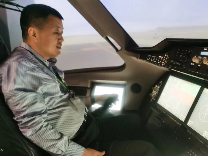 陈建国试飞C919模拟机。受访者供图