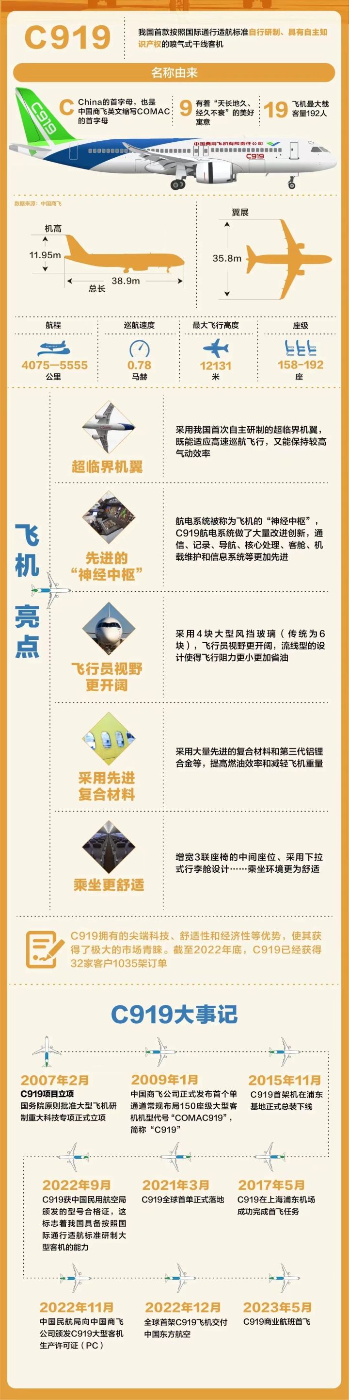 截至2022年底,C919累计获得32家客户1035架订单